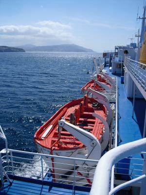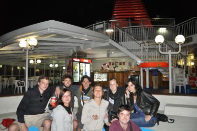 Wir sind zuerst 3 Stunden mit dem Bus nach Patras, einer Stadt im Westen der Peloponnese gefahren und von dort haben wir die Fähe nach Korfu genommen, die Fährfahrt dauerte auch nochmal 5 Stunden.