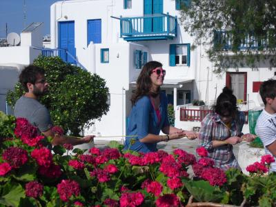 Nach 8-stündiger Fährfahrt sind wir in Mykonos angekommen. Nachdem wir letztes Semester das schlechteste von den drei Hotels zugewiesen bekommen hatten, haben wir uns diesmal das beste gesichert mit einem wunderschönen Pool und einem herrlichen Ausblick.