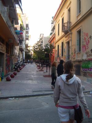 Ich musste gestern erst lachen, als ich in nem Reiseführer gelesen hab, dass sich Exarchia gebessert hat und man dort gemütlich in Cafés sitzen kann… aber nachdem ich das Viertel tagsüber gesehen habe, muss ich dem Reiseführer fast recht geben