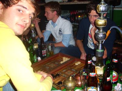 Wir haben eine kleine Shisha-Bar in Exarcheia entdeckt, wo man sich das Spiel ausleihen kann und da sitzen wir jetzt öfters rum, rauchen Shisha und spielen...