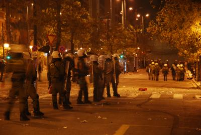 Jetzt gerade soll bei der Politechnischen Universität in Exarcheia die Hölle los sein. Die Polizei hat das Gebiet großflächig abgesperrt und die Studenten haben das ganze Unigelände eingenommen und werfen Molotow-Cocktails.