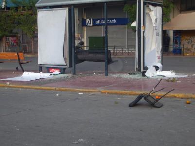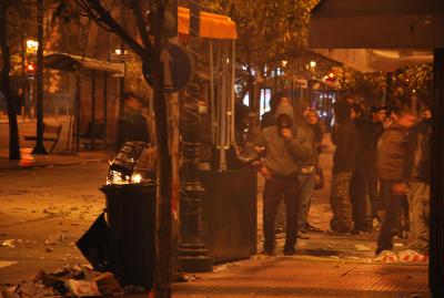 Vor allem um meine Universität herum brach das totale Chaos aus. Alle Bushaltestellen wurden zerstört, die Mülltonnen in Brand gesetzt und die maskierten Anarchisten und Studenten bewarfen die Polizisten mit Steinen und allem was sie finden konnten. Das Polizeiaufgebot war riesig, wir haben hunderte von schwer bewaffneten Polzisten gesehen.