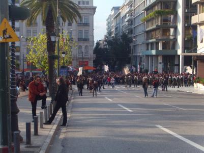 Heute war wieder eine große Demonstration angesetzt, von Panepistemiou (unserer Uni) nach Syntagma, dem Platz vorm Parlament und zurück. Der sind wir eine Weile gefolgt.